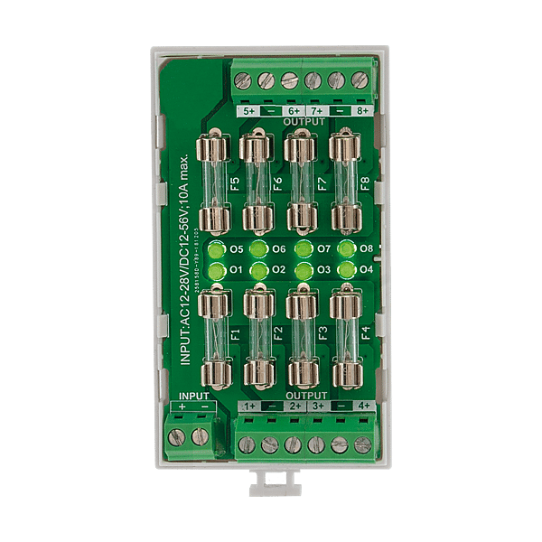| Spécificité | Chaque sortie est protégée par un fusible. LED verte d’état pour chaque sortie. |