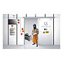 Espace nécessaire au travail d’atelier en préservant l’environnement extérieur des rayonnements. Sécurité Interlock, le laser se coupe dès que la porte s'ouvre. Sur roulettes avec freins.