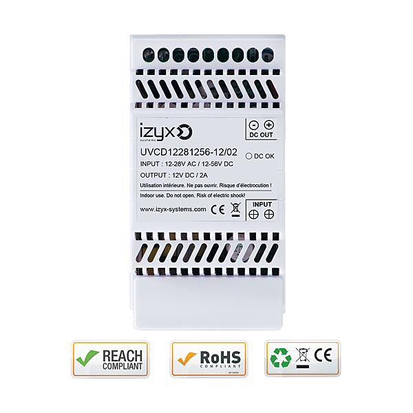 | Tension d'entrée (en V) | 12 - 28 VAC / 12 - 56 VCC |