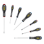 | Composition | - 4 tournevis plats : 2,5 x 50 mm / 3,5 x 75 mm / 5,5 x 125 mm / 6,5 x 150 mm - 3 tournevis Pozidriv : PZ0 x 75 mm / PZ1 x 100 mm / PZ2 x 125 mm |