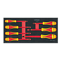 | Composition | - 4 tournevis plats en 75 mm : 3,5 mm / en 125 mm : 5,5 mm / en 150 mm : 6,5 mm / en 150 mm : 8 mm - 4 tournevis Pozidriv en 75 mm : PZ0 / en 100 mm : PZ1 - PZ2 / en 150 mm : PZ3 |