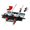 | Composition | - 1 plaque de guidage - 1 pointe de centrage - 1 foret carbure Ø 35 mm - 1 fraise à tourillon HW Ø 5 mm (avec pointe) - 1 fraise tourillon carbure Ø 5 mm (avec pointe de centrage et araseur) - 2 butées latérales avec curseur - 2 serre-joints FSZ 120 - 2 butée longitudinale - Tournevis - 1 systainer SYS 1 T-LOC |
