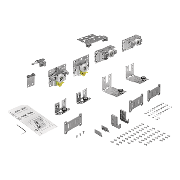 | Composition | Pièces de guidage, coulissage et d'accessoires de fixation pour une armoire à 2 ou 3 portes. |