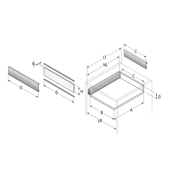 | Spécificité | Se clipsent directement sur les côtés de tiroirs. Pas besoin d'utiliser les fixations arrières des kits. Existe en finition champagne : nous consulter |