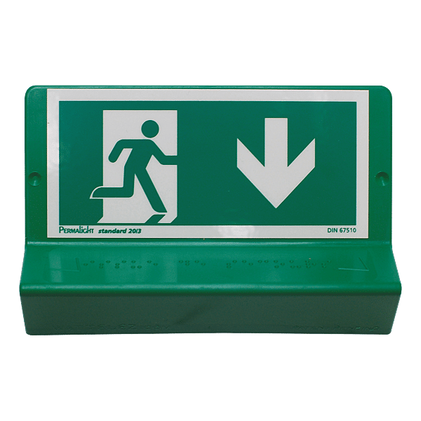 | Type de signalisation | Sortie de secours flèche bas |