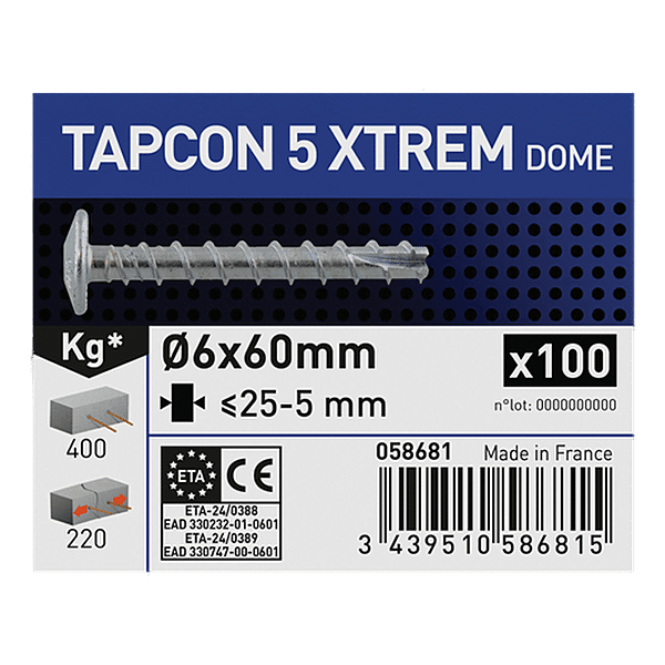Vis béton tête bombée large acier zingué TAPCON 5 XTREM