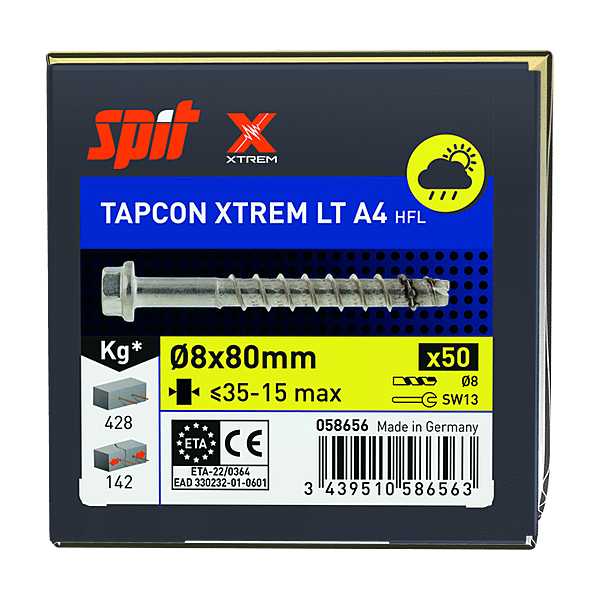 Vis béton tête hexagonale inox A4 TAPCON XTREM LT HFL